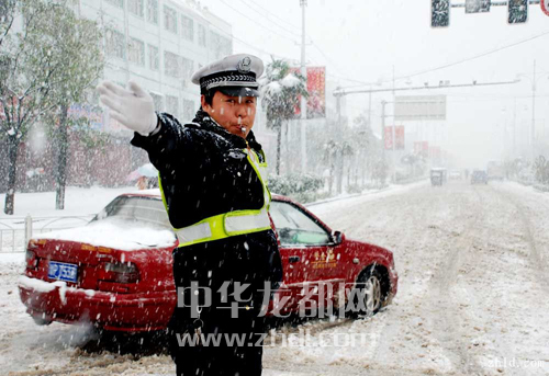 走到人民商场,看到三位交警在执勤。两位年轻交警在忙着指挥车辆通行,年纪大一些的在推一辆车轮打滑的车,厚厚的雪花遮住了他们的警服,在白雪的衬托下,警服的深蓝色格外美丽。抬头一看,红绿灯在这样的天气里也耍起脾气罢工了,可是交通秩序依然良好,行人们都很遵守交通规则,好像红绿灯依然在工作。车辆也是按照交警的手势行驶,一切都是这么井然有序,虽然大雪还在肆虐,虽然红绿灯依然没有指示,但这一刻,似乎每个人心中都有一盏红绿灯。