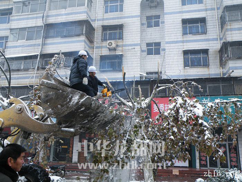 11月13日,周口义工在清理树木积雪。(感恩的心 摄)