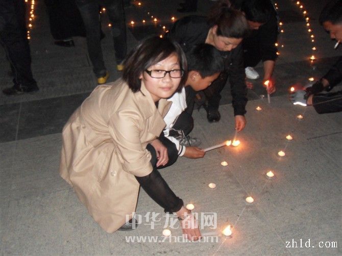 4月18日晚,在市区五一广场,网友点燃了为玉树灾区祈福的蜡烛。