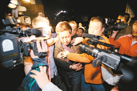 严阵以待的大批记者将马志明包围。记者 谢伟 摄