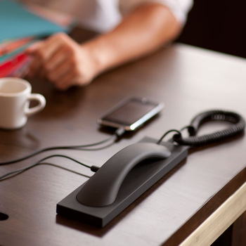 为苹果公司产品设计生产了众多配件的摩仕公司又为苹果迷们提供了一个新选择。这款话筒附件延续了摩仕公司产品一如既往的设计风格,其造型十分优雅、圆润,与苹果产品搭配起来可谓是相得益彰。它可以让使用者变更iPhone手机的电话接听方式,让手机在办公时候使用起来更加方便。您可以选择将手机和全副话筒套件连接起来,这样便能通过拿、放话筒来接听、挂断电话。当然,您也可以让话筒直接与手机相联,只不过如此一来,便需要借助手机界面的挂断键来挂断来电。若是配有无线网络,这款电话附件也可以为iPad提供通话辅助服务。