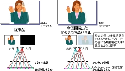 这里先要回顾一下视差屏障(视差光栅)技术,因为自从夏普宣布全球首款裸眼3D触摸屏以来,以后推出的包括日立3D IPS屏在内的裸眼3D显示屏几乎都是基于该项技术。