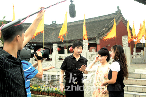 昨天上午,在淮阳太昊陵景区,央视《梦想剧场》剧组在这里拍摄外景。著名歌星付笛生、任静夫妇及李丹阳前来助兴。据悉,作为今年荷花节期间的一项重要活动内容,这档以宣传淮阳秀美风光为主题的节目,将在近期央视3套滚动播出。 晚报记者 杜欣 摄