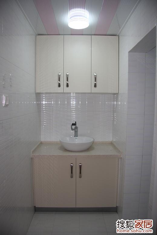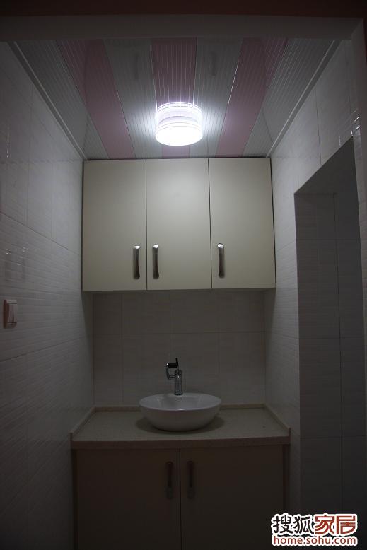 卫生间干区,底柜和吊柜貌似有色差,好像是灯光的问题。这里我感觉有点苍白,今后还需要装饰一下。