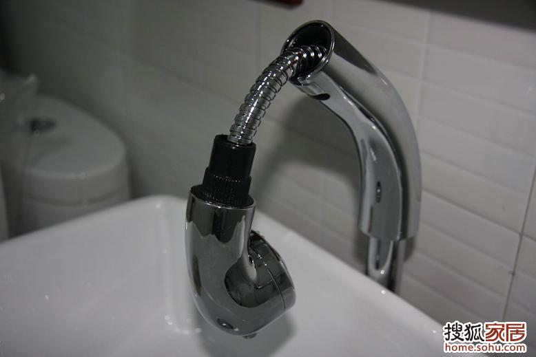 水龙头特写。是一款抽拉式的水龙头,方便今后洗头发。