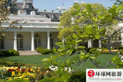 提起白宫南草坪,很多人知道那里是美国总统接见国外元首的地方,神秘庄严。殊不知,包括南草坪在内的白宫花园都是对外开放的,常人也可游览。白宫花园总面积大约有100多亩,包括位于白宫东西两侧的杰奎琳·肯尼迪花园、玫瑰园、南草坪和附近的儿童花园。杰奎琳·肯尼迪花园位于白宫东侧,也称叫东花园,种植的是四季花卉和树篱。白宫左侧是大名鼎鼎的玫瑰园,即西花园,是总统举行新闻发布会场所。