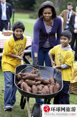 很多人并不知道,白宫还有一个厨房花园,通俗的说就是白宫菜园子。众所周知,现任总统奥巴马的夫人米歇尔是绿色食品和健康饮食的倡导者,对浇园种菜的活儿情有独钟。奥巴马总统的好友,白宫助理厨师长卡斯说,“菜园子的蔬菜包括花菜、胡萝卜、菠菜等,绝对天然,从不使用化肥和杀虫剂等。”他说,当地的孩子经常被第一夫人邀请到白宫参加蔬菜种植和收获;一些孩子不喜欢吃蔬菜,而亲手采摘的蔬菜就不一样了。