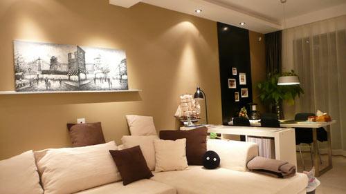 重点看吊顶、窗帘、沙发、和饰品布置的浑然一体