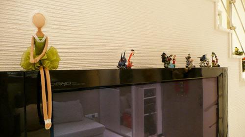 电视上的小饰品很有情调,就是小人的腿把电视屏幕挡住了 呵呵