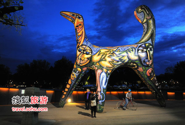 维多利亚艺术中心是著名设计者罗依· 格郎的杰作。远远望去,激光灯下艺术中心115米直径的白色金属网罩仿若白色的芭蕾舞裙或小型的艾菲尔铁塔。维多利亚艺术中心高达162米,始建于1973年,耗时11年之久。如今,“芭蕾舞裙”不仅是维多利亚艺术中心的醒目标志,而且成为墨尔本以及整个澳大利亚艺术的标志。尤其当夜晚来临,这座不断变换颜色的高塔,就是墨尔本夜空中最灿烂夺目的高柱。