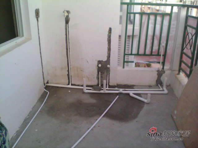 阳台水电改造效果,细细的小水管是为了排柜机的空调水