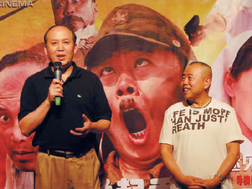 由冯小宁执导、郭达、潘长江等主演的战争喜剧电影《追击阿多丸》昨日在沈城上映,导演冯小宁、太太刘小微、女儿冯微朵,一家三口在电影中均有参演不同角色。继6年前的战争喜剧片《举起手来》获得成功后,冯小宁再次“笑着”抗战,该片不仅堪称《举起手来》的姊妹篇,其主创阵容也全部沿用当年班底,讲述的依旧是中国军民抗击日军侵略过程中发生的一系列啼笑皆非的故事。剧中潘长江和郭达的幽默表演堪称戏中的一大亮点。与之前的《举起手来》相比,此次《阿多丸》除了场面和投资变大了,两位主演在片中的身份也升级了,“农民大叔”郭达变身为厨师,潘长江也因在《举起手来》中的“表现”,被上级升了官。俩人再次斗法,对于与老搭档的对比,潘长江称:“这得看风格,演好人是郭达演得好,演坏人自己演得好。”相信此片比前一部的精彩程度有所升级。(记者林娜 实习生刘祜 摄影 常晟罡 实习生张贺然)