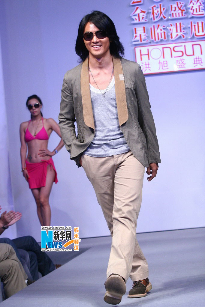 昨日,久未在内地露面的郑伊健现身北京,出席某眼镜品牌上市推广会。郑伊健身穿休闲西装和卡其色裤子,在台上戴太阳镜学男模走秀,潮味十足,对镜头自信挥手,非常有当年“古惑仔”范儿。(文图:玄反影)