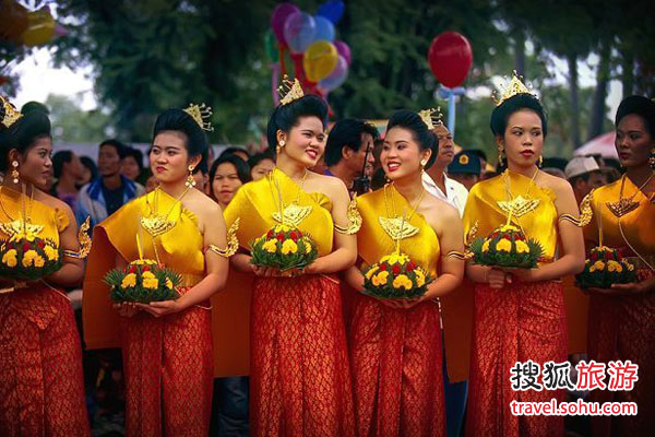 “水灯节”好比中国的七夕,是一对对相爱的人相聚一起,表达彼此的爱慕之情。每到水灯节,泰国各地的青年人都怀着以水灯为缘,找个如意爱人的甜蜜梦想涌向金桂河畔以及清迈等灯会最盛的城市。水灯节堪称泰国最浪漫的“求爱节”。