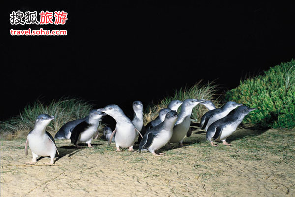 最出名的项目,则是到菲利普岛天然公园(Phillip Island Nature Park,Summerland Beach,Ventnor Road,Phillip Island VIC 3922,5951 2800,www.penguins.org.au)看小企鹅归巢,它们的巢穴布满整个山坡,看起来像个企鹅公寓。根据每天日落时间不同,归巢时间不同,通常先有一两只小企鹅探出头来试探安全性,然后再成群结队地上岸。澳大利亚的企鹅是毛茸茸而身材矮小的品种,看起来相当可爱。VIP区有架空的步道环绕整个“企鹅公寓区”,它们就在你眼皮底下摇摇摆摆地走着,还时常停下来休息,看得出来企鹅对陆地运动相当不在行。为了不惊吓到这些可爱的家伙,整个过程不能拍照或大叫,更不能动手去侵犯它们,现场相当多小孩,那些压抑住自己强烈的兴奋小脸也很有趣。