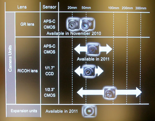 继索尼E口镜头之后,德国Photoscala网站也公布了理光GXR系统的发展路线图。其中的亮点是在2011年理光将推出多款组件,但路线图中并未说明这些组件支持何种接口。在此前的传闻中已经提到了M4/3模块,而徕卡M口和哈苏口的原型机甚至也已流传了数月。我们现在只能等待理光在2011年揭晓一切谜底了。
