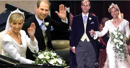 英国王室新娘索菲:酷似戴安娜。爱德华是英女王的小儿子,王妃苏菲在她嫁入皇室前,有人曾公开她的裸照,其中以12年前和一位电台主持人在车内调情的照片最为轰动,照片中的苏菲被揭起上衣,露出胸部。此事差一点儿令她与爱德华的婚事节外生枝,但最后她得到女王的原谅,和爱德华王子顺利完婚。