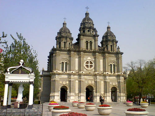 西开教堂全称天主教西开总堂,又称老西开教堂、法国教堂。位于天津市和平区滨江道独山路,坐西南朝东北。西开教堂是天津市最大的天主教堂,也是天主教天津教区主教座堂。