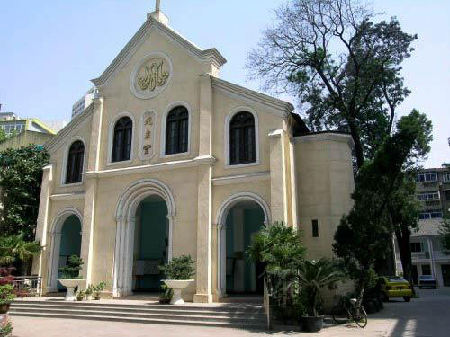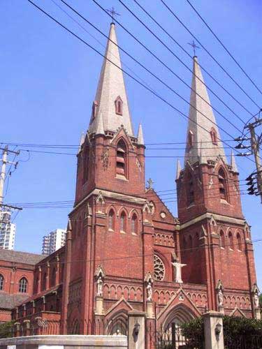 位于徐汇区蒲西路158号的徐家汇天主堂是上海最大的天主教堂,也是中国第一座按西方建筑方式建造的教堂。它座西朝东,平面呈十字形,是一座仿法国中世纪哥特式建筑,红色的砖墙,白色的石柱,青灰色的石板瓦顶,两座钟楼,南北对峙,高耸入云。徐家汇天主教堂以其规模巨大、造型美观、工艺精湛,在当时被誉为上海的第一建筑。