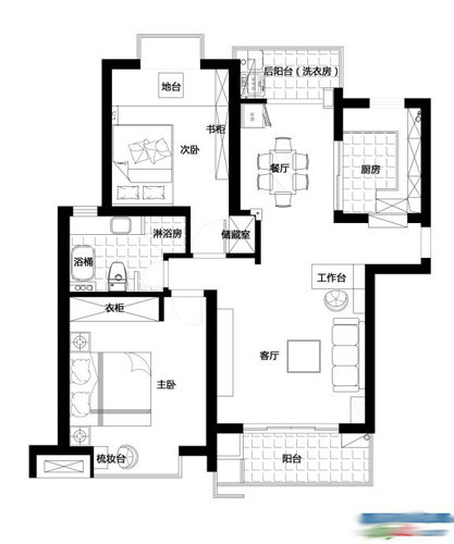 90平米,套内面积70,户型也算足够方正,南北通透,主卧和客厅朝南,应该可以算90平米户型中的样板户型了,但结合实际,还是有些许缺陷: