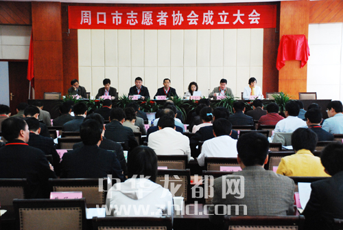 (本网记者 戚永)4月19上午,周口市召开志愿者协会成立大会。市委宣传部副部长、文明办主任朱国恩、市文明办副主任杨顺清、团市委副书记陆志杰、市妇联纪检员王素华、市文化局纪检组长谢强、市文联副主席葛罡、市社会组织管理局局长崔建玲等出席会议。周口市志愿者协会首届会员共70余人参加了本次大会。
