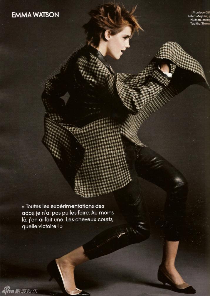 近日,艾玛-沃特森登上法国版《ELLE》杂志2011年十月号封面,短发俏丽。