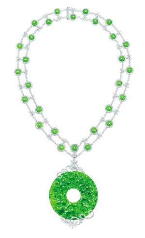 中国的婚礼多是两段式,仪式加敬酒,在这期间新娘子往往需要从西式礼服换上中式礼服,而在各自的礼服搭配上也十分讲究。在ILIONNO Tailor MadeI发布暨ILIONNO郑州旗舰店开幕现场上发现的这只Jade 系列翡翠项链极具中国风情,设计师采用了传统的如意扣设计,很适合与敬酒时的中式礼服做搭配。