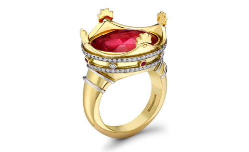 Theo Fennell :18克拉黄白K金镶红碧玺钻石粉色蓝宝石皇冠戒指,12,750镑
