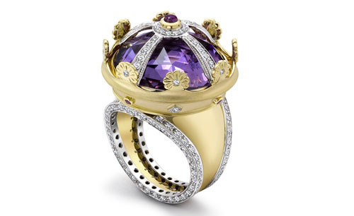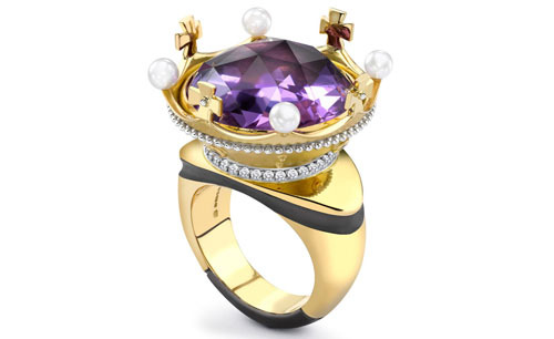 Theo Fennell :18克拉黄白K金镶紫水晶钻石珍珠皇冠戒指,12,500镑