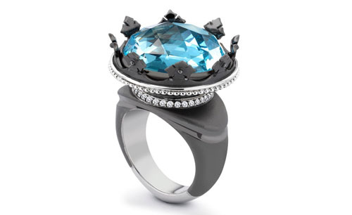Theo Fennell :18克拉白色K金镶黑铑蓝黄玉钻石皇冠戒指,11,900镑