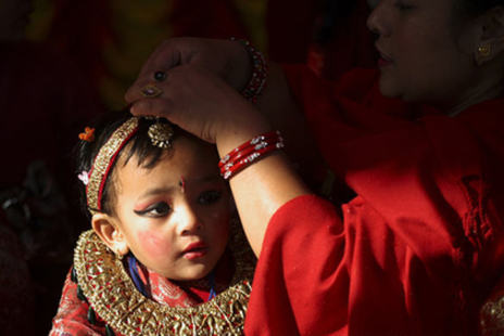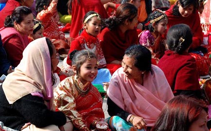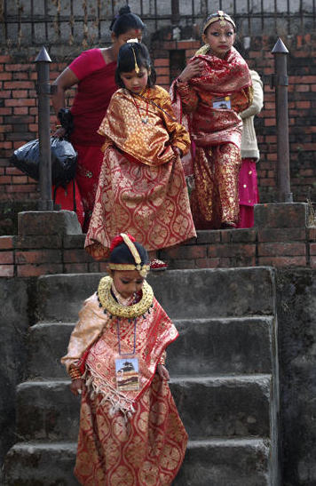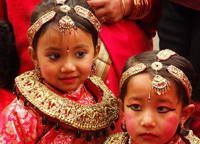 尼瓦尔族女孩一生“结”三次婚,第一次嫁给木苹果(孟加拉苹果),称之为果实婚;第二次嫁给“太阳”;第三次才是与一个男人结为夫妇。