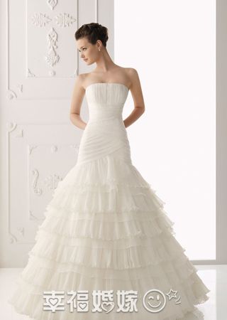 alma novia2012婚纱采用了不少华丽的重工,比如十几层的手工蕾丝裙摆,排列缜密的珍珠镶边,手工打造的珠片坎肩……相当适合在冬季穿着,让你优雅华丽出嫁