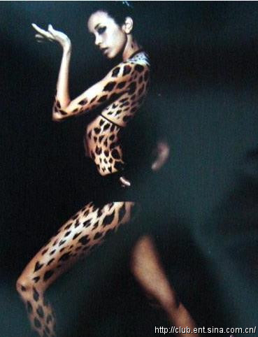 莫文蔚大胆拍摄全裸彩绘写真,全身斑驳的黑点更增添了她性感神秘的感觉。如猫般的眼睛放射着勾魂般的野性诱惑