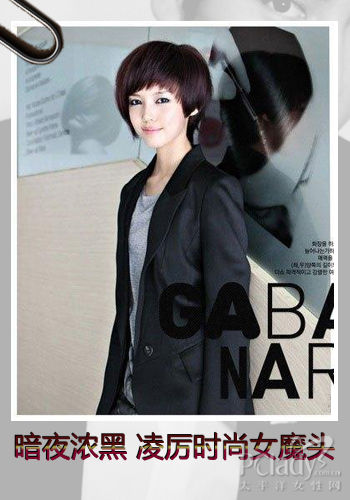 时尚的女士大多留有长长的卷发,现在就让我们一改常态制造惊喜。深色(黑咖啡/黑紫色)短发是时尚的代表,清新而脱俗地扮酷是时尚的根本。这款深色短发非常适合黑色系的装束和深黑色眼妆和裸色唇色,当然冷色系腮红可以在颧骨下方加重。在人群中显得低调、深沉、却锋芒毕露,非常适合出席时尚度很高的场合。如果你是长发,在后脑上部分将它扎成马尾,然后紧紧绕圈以小夹子固定的服帖一些,必要时配合发蜡使之光滑紧致。再戴上发网,固定四周,戴上假发即可。