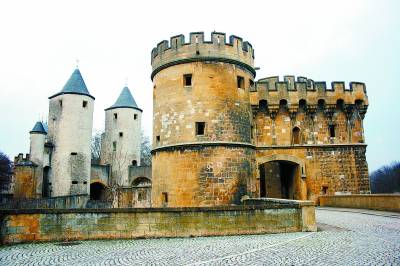 中世纪的梅斯是一座军事重镇,城东至今保存有建于1230年的“德意志门”。这座横跨塞勒河两岸城门历经多次惨烈的战役,虽然在1944年盟军进攻梅斯的时候被毁,但仍保留着当年的基本面貌,其上残留的黑色印迹见证了那些硝烟弥漫的日子。站在城门下抬头仰望,我忽然发现,这座城门下宽上窄的圆柱形样式,活脱脱一个国际象棋里的“车”啊。
