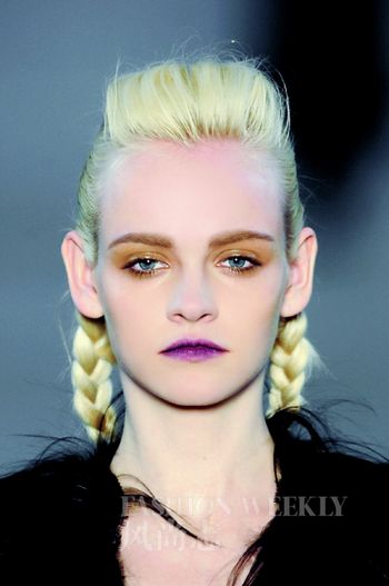 额前的发髻高耸,颇有强势的贵族风范,耳后的两个辫子被轻轻地绑在一起,平添了一分少女的俏皮感。