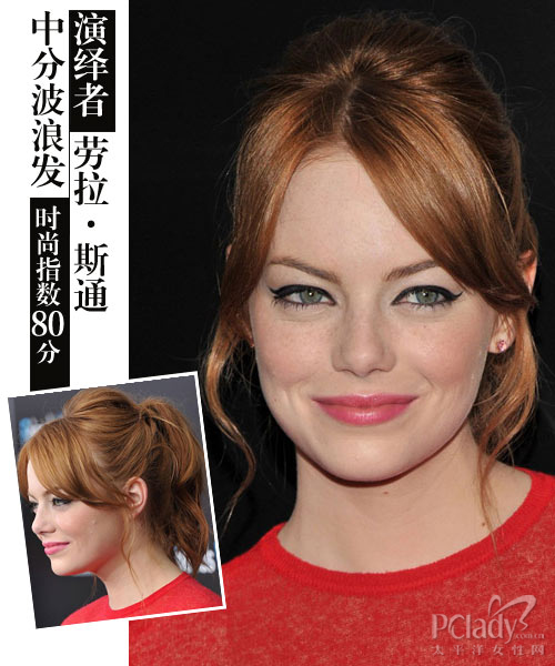 演绎心机:空气感卷发可不是日系发型的专利,石头姐将卷发分成三个部分,并细心的汇集成马尾,使头顶的头发微微拱起,这承袭了传统欧式公主发型的精髓,因而这款发型得以显得甜美梦幻。中分波浪刘海是石头姐的另外一个小心机,这种刘海通常是修饰脸型的最佳方案,让脸稍大的MM立马显得娇媚起来