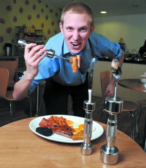 对于美食,不少人没有抵抗力,导致身材越来越走样。不过,英国一家公司设计的健身餐具或许可以解决这个问题,因为用这套餐具进食能将卡路里消耗掉。