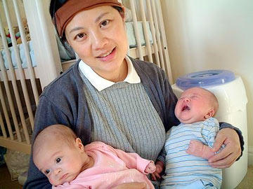 姜丰与自己的一对混血双胞胎