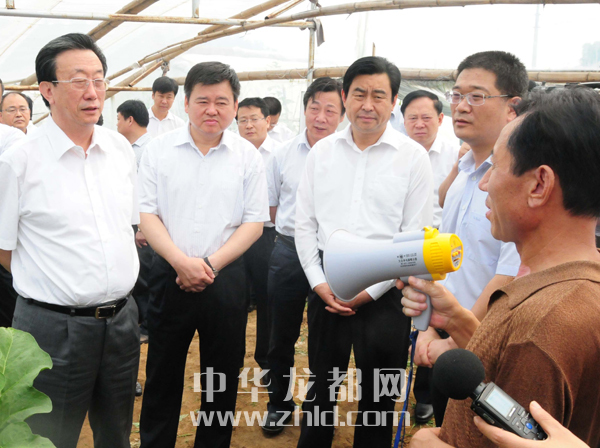 图为省长郭庚茂一行在市领导徐光、岳文海的陪同下到西华县调研。(记者李寒摄)