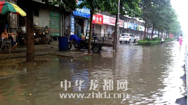 暴雨导致市区部分地段出现积水,特别是东杨庄果品贸易市场院内,积水深达几十厘米,在果品市场门口望去院内好似“平湖”。