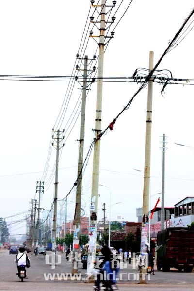 记者昨日在市区莲花路与五一路交叉口附近看到,10余根电线杆杵在五一路中间,给行人带来极大不便。不少市民建议有关部门尽快挪走这些“路桩”。 晚报记者 金月全 摄