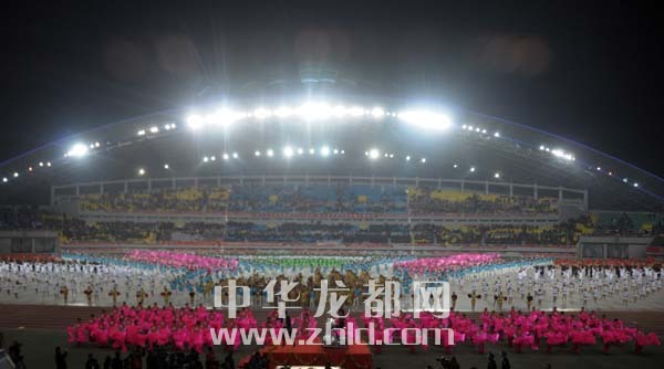 在开幕式大型文体表演《龙腾盛世·周口颂歌》中,5000余名演员为现场观众奉献了一场极具浓郁周口特色的文艺演出,集中展示了我市深厚的历史积淀、厚重的文化底蕴及现代农业发展的壮丽篇章和科学发展、共建和谐、实现富民强市的蓬勃生机,让现场观众享受了一次丰盛的文化盛宴。