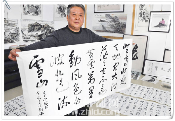 本报讯 新的一年即将来临, 12月12日,周口报业书画院联手太行山书画院举办的迎新春笔会在周口报业大厦二楼举行,8位省内外书画名家汇聚一堂,挥毫泼墨,即兴创作(如图),既交流了创作经验,又表达了对新年的祝福。
