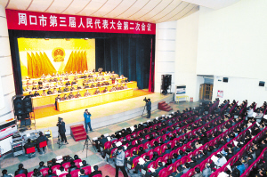 全体与会代表以举手表决的方式通过了周口市第三届人民代表大会第二次会议选举办法。