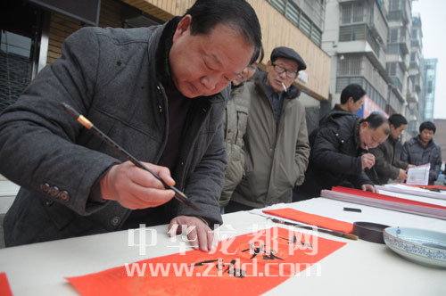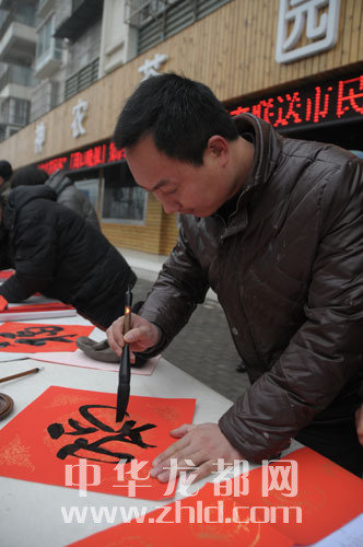 为弘扬传统文化、营造喜庆祥和的新春气氛,本报自1月11日推出《周口晚报》第四届原创春联大赛后,全国各地的读者积极参与,短信、电子邮件和信件纷至沓来,短短20天,本报就收到来自河南、北京、山东、广东等20多个省市的300余位春联爱好者发来的应征春联1100余副。昨天上午,《周口晚报》第四届春联大赛义写春联送祝福活动如期举行,9时至12时,6名书法爱好者笔走龙蛇,共书写600余副春联,赠予来现场领取春联的市民。