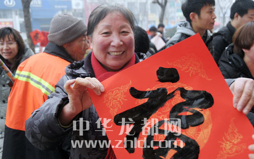 昨日10时许,在义写春联送祝福活动现场,书法爱好者写的春联受到不少市民青睐。“好多年都没有看到过写春联的了!往年家里贴的春联都是在街上买的现成的,没啥意思。今年书法爱好者义写春联送给俺,真好!”市民陈先生拿到春联后,高兴得嘴都合不拢了。今年70岁的吴师傅拿到一张“福”后,小心翼翼地卷了起来。吴师傅告诉记者,他要把这张“福”贴在自己家的大门上,“贴个‘福’,让福气到家”。