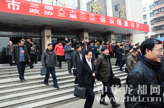 2月19日上午,周口市三届人大三次会议第一次全体会议结束。图为 大会结束后,人大代表走出会场。