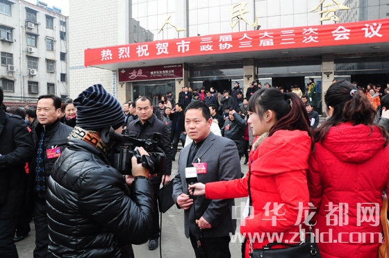 周口市三届人大三次会议第一次全体会议结束后,媒体记者忙着采访 。