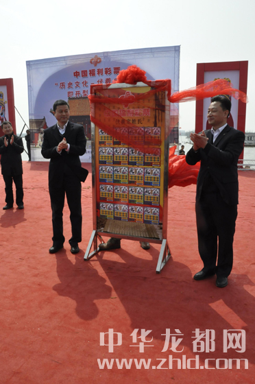当日11时许,中国福利彩票“历史文化—伏羲定姓氏”即开型彩票首发仪式在淮阳县羲皇文化广场举行,这标志着“中华始祖”太昊伏羲首次作为主题图案登上中国福利彩票票面,并正式向全国发行。